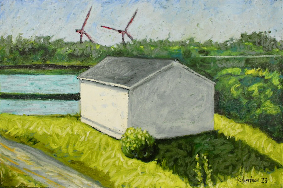 His extensive experience as a painter, graphic designer, patent drafter, and muralist is primarily self-taught, with one year of college education, and has worked in various studios, including three at Brickbottom Artist’s Studios in Somerville, MA. His artistic skills span multiple mediums, including oil painting, encaustic, egg tempera, watercolor, acrylic, sculpture, digital drawing, and printmaking.